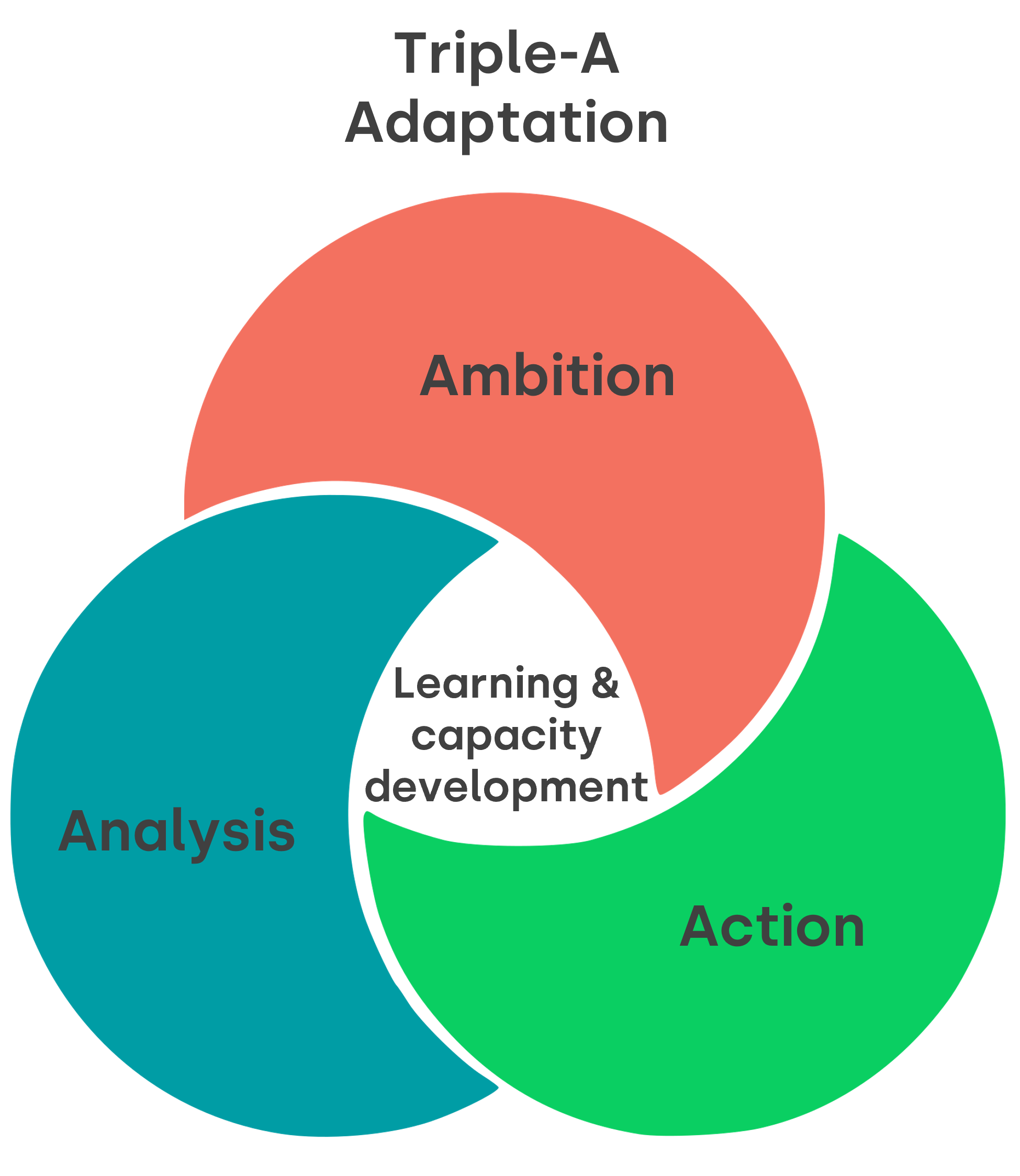 This entails undertaking the necessary measures to achieve the desired objectives and goals. This involves creating and implementing adaptation actions and measures to reduce climate risk, considering specific contexts and limitations. Action includes deciding on short, medium, and long-term actions, integrating with other policy domains, and facilitating or stimulating others to implement parts of the ambition.